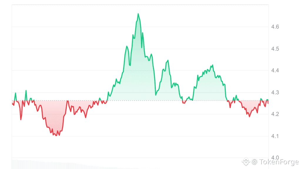 Do zakończenia sesji, ICP skompresował się w przedziale $4.20–$4.30