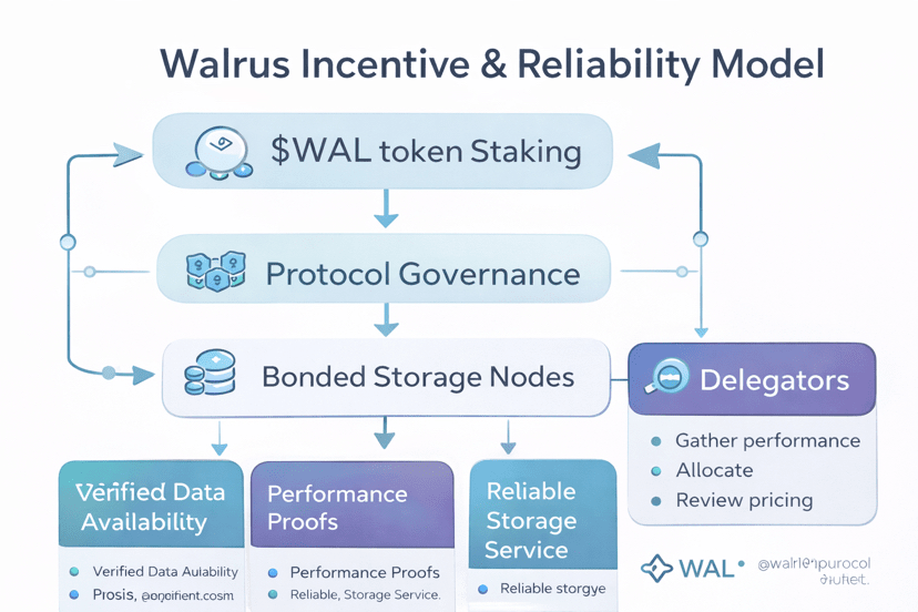 Token $WAL zasila uczestnictwo w sieci Walrusa. Operatorzy węzłów stakują WAL, aby zabezpieczyć system i zarabiać nagrody za czas działania, co zachęca do długoterminowego zaangażowania. Użytkownicy płacą opłaty w WAL za usługi przechowywania, tworząc przewidywalny, przejrzysty model ekonomiczny. To zapewnia, że dostępność danych nie zależy od krótkoterminowych zachęt czy cykli hype'owych—jest to wbudowane w projekt sieci.
