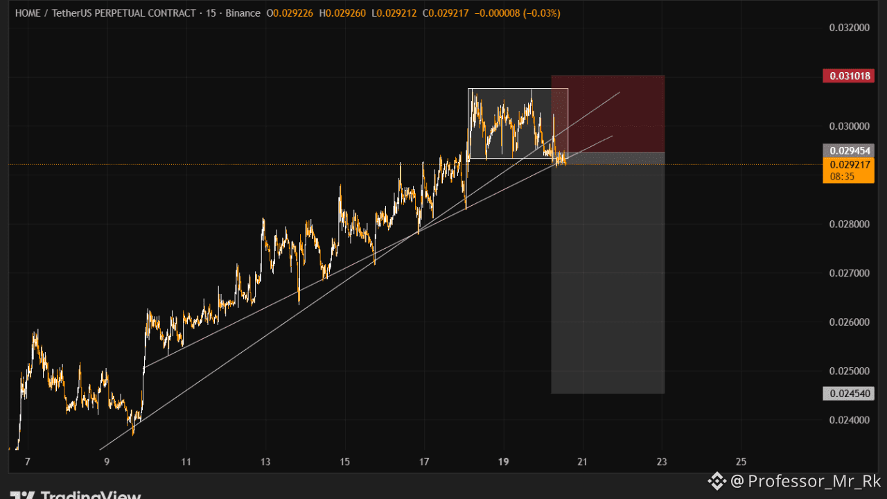 niedawny spadek poniżej kluczowej wznoszącej linii trendu po okresie konsolidacji, wykres sugeruje wyższą prawdopodobieństwo ruchu niedźwiedziego w krótkim okresie. Cena prawdopodobnie będzie kontynuować swój spadek w kierunku . Traderzy chcący skorzystać z tej sytuacji mogą rozważyć pozycję krótką (stawiając na spadek ceny) z limitem straty umieszczonym powyżej oporu 0.031018, aby zarządzać ryzykiem.