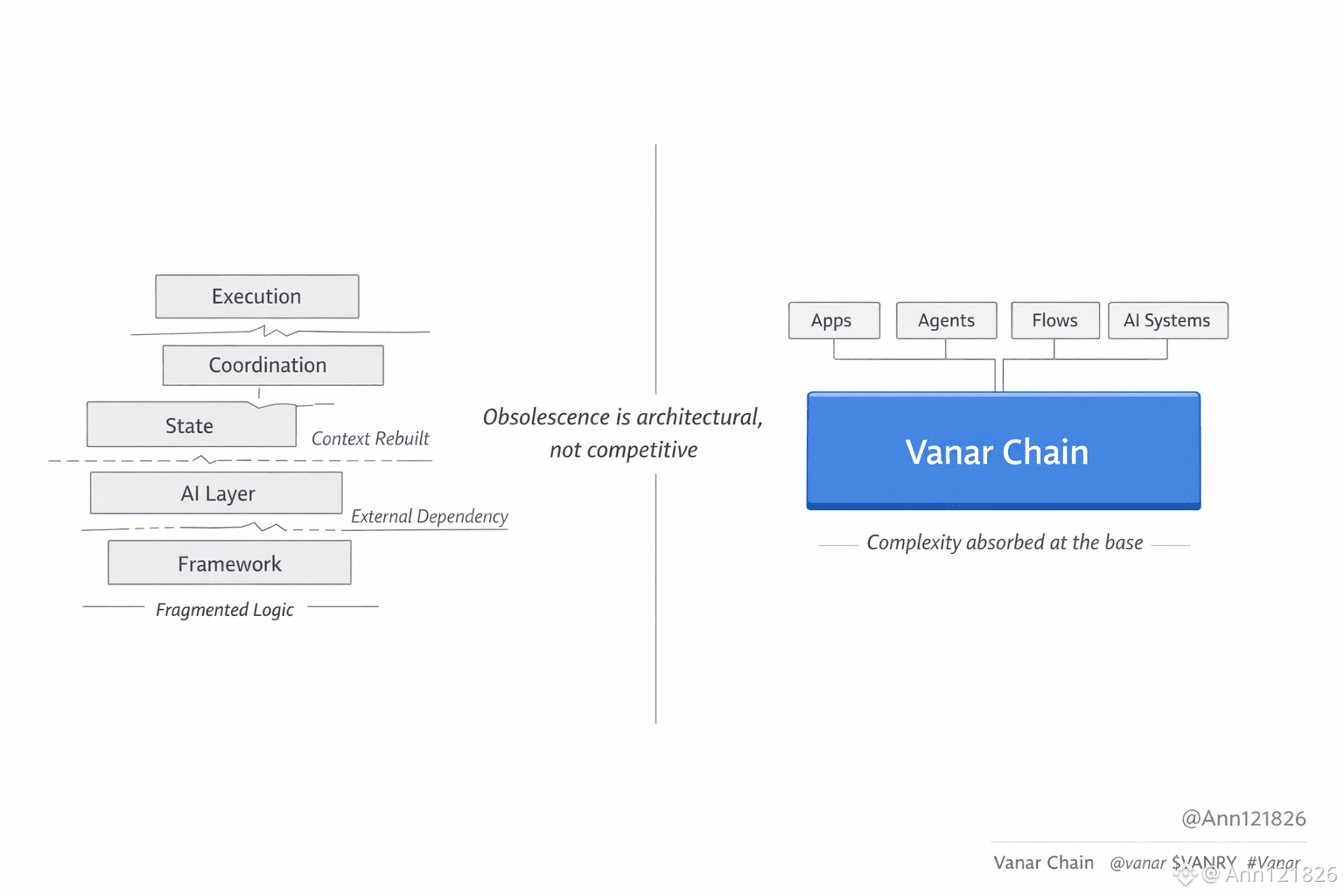 En este contexto, la obsolescencia de muchas L1 no proviene de la competencia, sino de sus propias decisiones fundacionales. Diseñar para demos, para casos simples o para flexibilidad genérica termina limitando la capacidad de sostener sistemas reales en producción. Vanar Chain apuesta por lo contrario: una infraestructura pensada para absorber complejidad sin colapsar, donde el crecimiento no implica ruptura, sino continuidad.