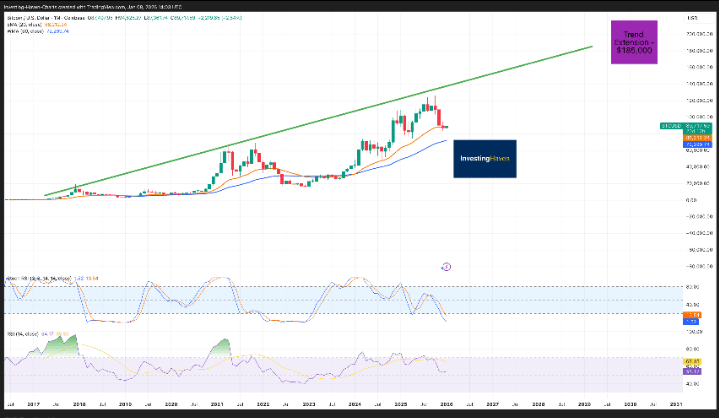 Jeśli kupujący nie obronią obecnych poziomów, BTC może szybko spaść w kierunku $77K. Dopóki 20-dniowe EMA (~$91K) nie zostanie odzyskane, ryzyko spadku pozostaje wysokie.