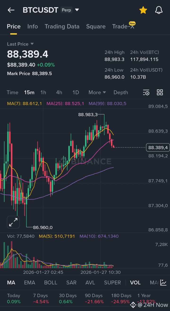 hôm nay (26/01/2026), Bitcoin ($BTC) phục hồi nhẹ và quay lại mốc 88.000 USD không phải là một đợt tăng trưởng mạnh mẽ (bull run) mà thực chất là một nhịp "hồi phục kỹ thuật" (technical rebound) sau đợt bán tháo cuối tuần qua.