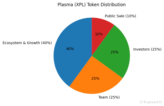 At mainnet beta launch, Plasma states an initial supply of 10,000,000,000 XPL, with programmatic increases tied to validator rewards described in their tokenomics sections. The distribution in Plasma’s docs is explicit and easy to summarize: