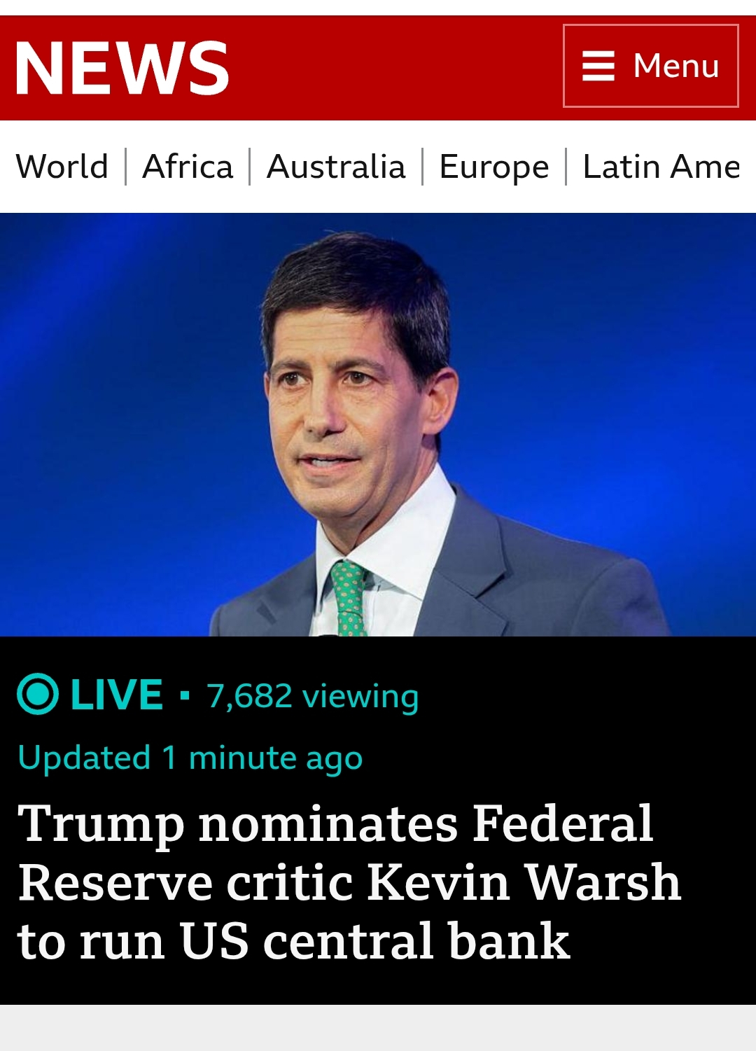 W rzeczywistości, kiedy TRUMP ogłosi przewodniczącego FED, Kevina Warsha, rynek spada 🔴