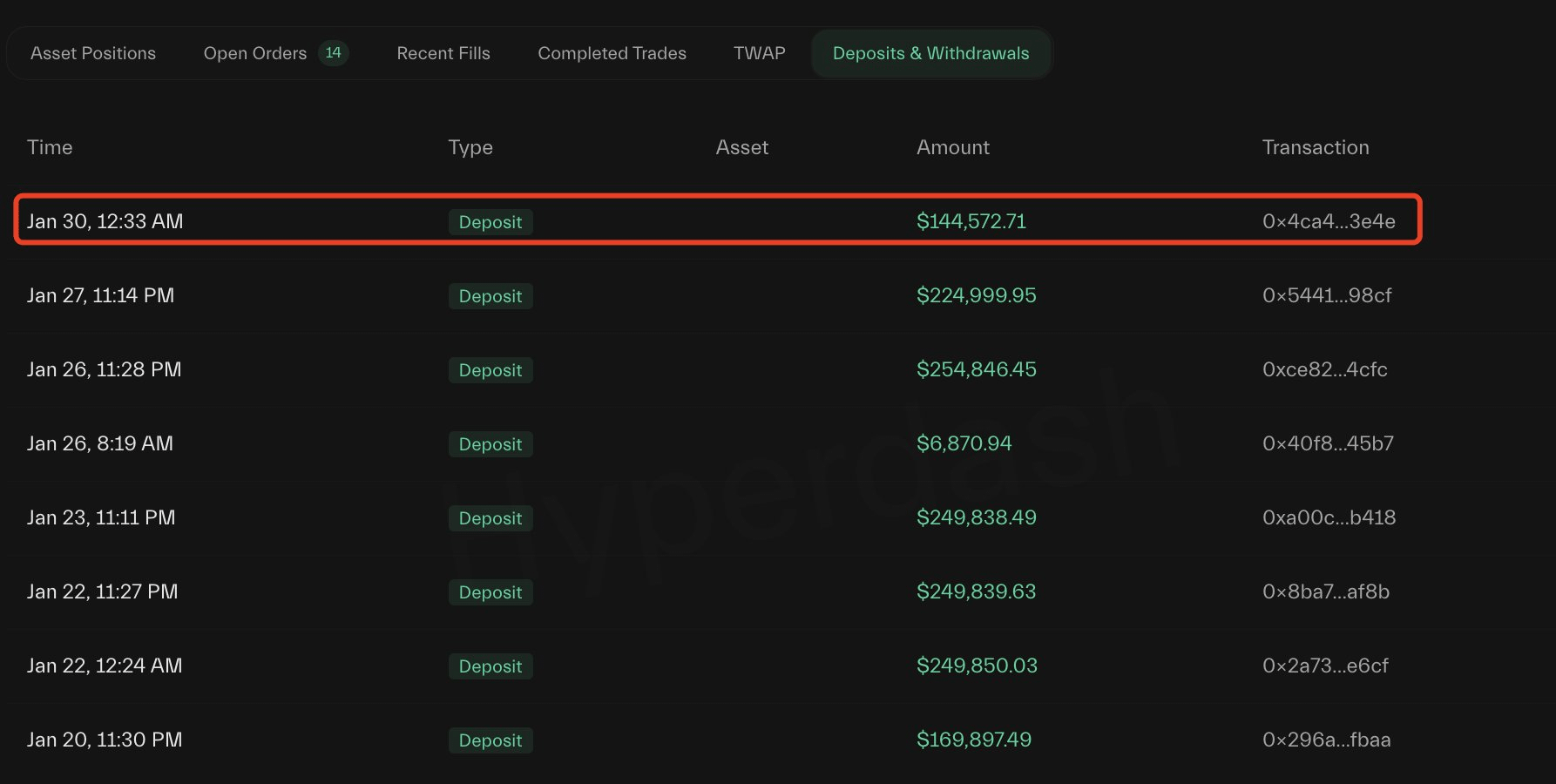 Ostatnio Machi wpłacił kolejne 144,573 $USDC do Hyperliquid, aby dodać do swojego #Ethereum long.