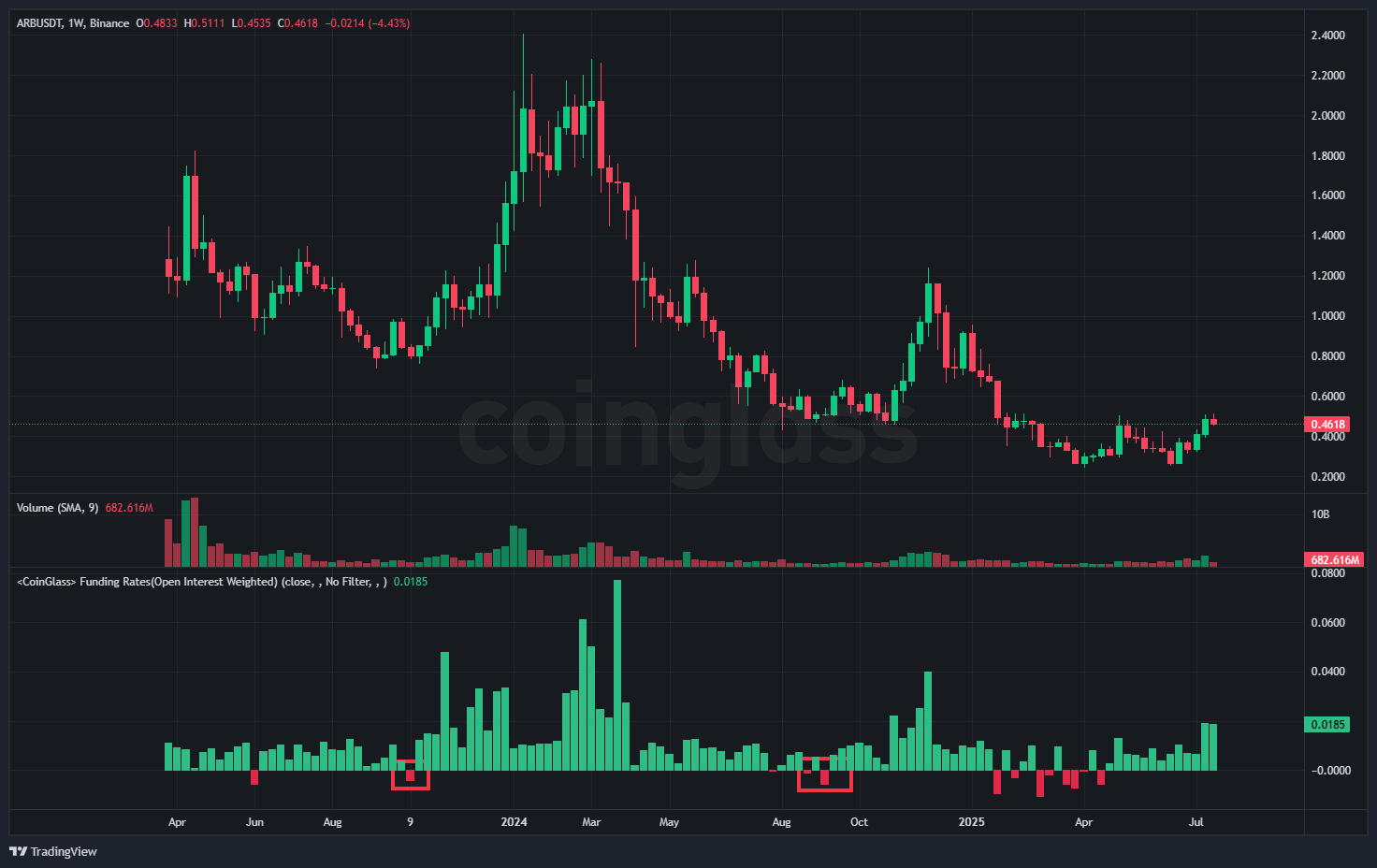 Jak dotąd w 2025 roku stopy finansowania były mniej ekstremalne w porównaniu do wcześniejszych cykli napędzanych hype. Sugeruje to bardziej ostrożne i zrównoważone środowisko rynkowe. Choć to zmniejsza szansę na nadmierne zyski z finansowania, obniża również ryzyko systemowe.