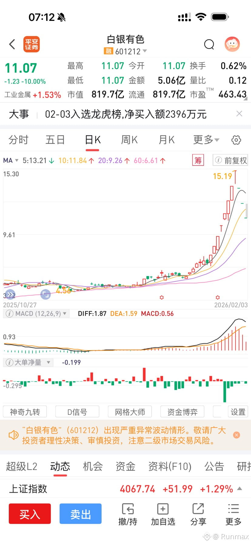 复盘白银有色:真正能全身而退的,只有极少数在第3-4个涨停就清仓的大户。他们看到了:公司黄金白银收入占比极低、毛利率只有6.54%、2025年还计提巨额预计负债。股价暴涨完全是情绪+题材炒作,一旦银价回调、风险提示一发,资金瞬间跑路。
