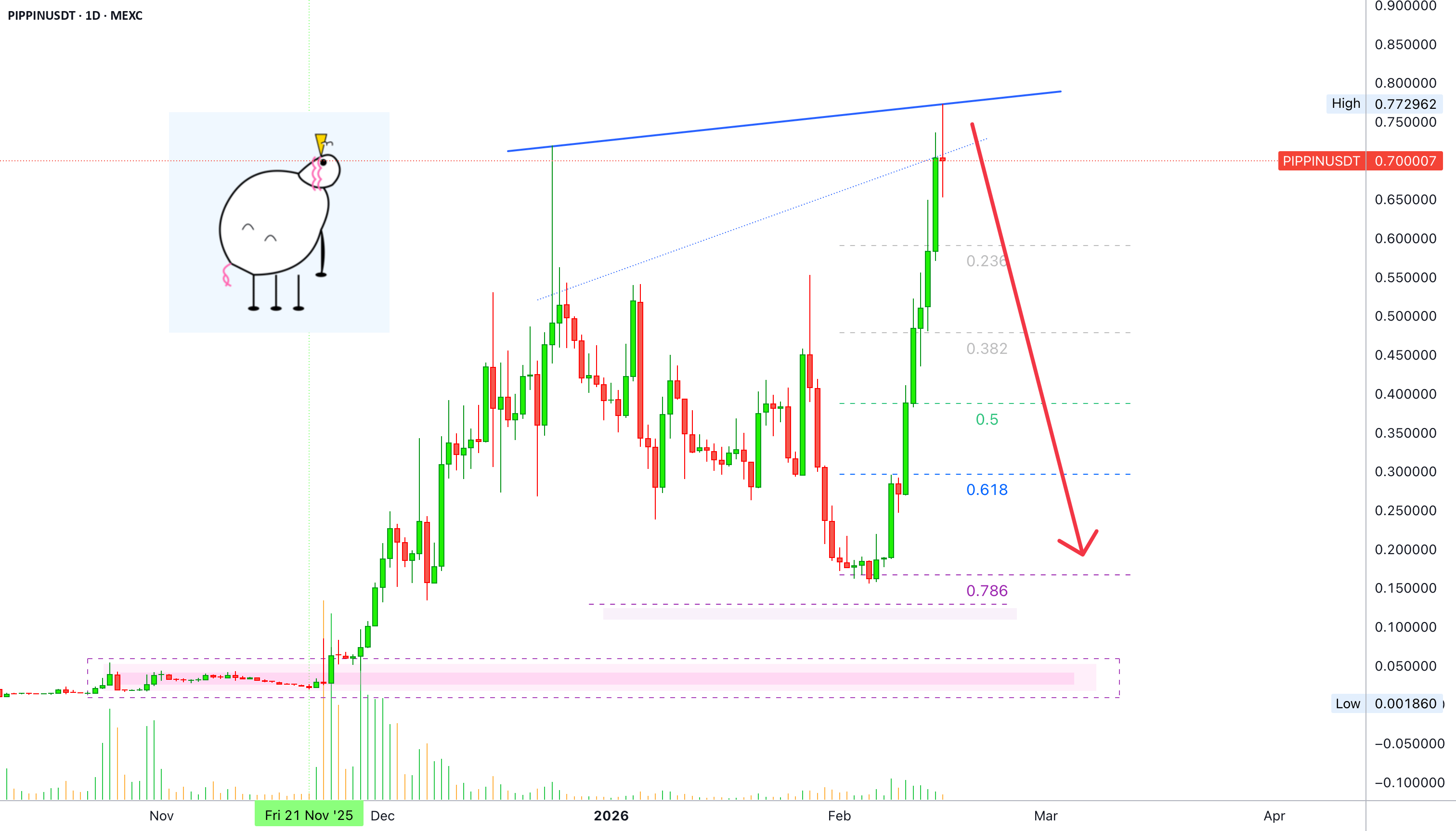 PIPPINUSDT a devenit ultra hiper optimist recent, atingând un nou maxim istoric. Această mișcare optimistă tocmai acum își desfășoară cursul. Este gata.