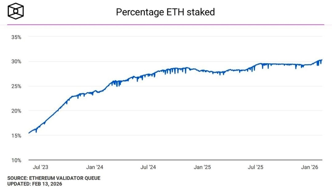 Staked ETH has just reached a fresh all-time high. Around 37.2 million ETH is now locked into staking contracts, which means roughly 30.8% of Ethereum’s total supply is no longer freely tradable. In simple terms, almost one out of every three ETH is effectively taken off the open market.