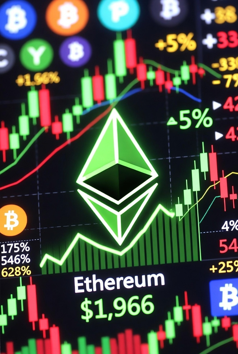 $ETH is stealing the spotlight today, surging to ~$1,966 (+5% in 24h) while the rest of the market plays catch-up. This isn’t just noise – it’s real momentum!