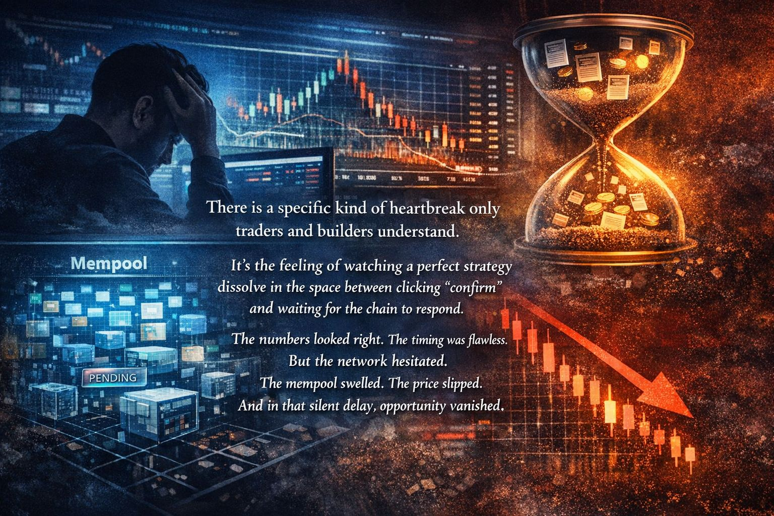There is a specific kind of heartbreak only traders and builders understand. It’s the feeling of watching a perfect strategy dissolve in the space between clicking “confirm” and waiting for the chain to respond. The numbers looked right. The timing was flawless. But the network hesitated. The mempool swelled. The price slipped. And in that silent delay, opportunity vanished.