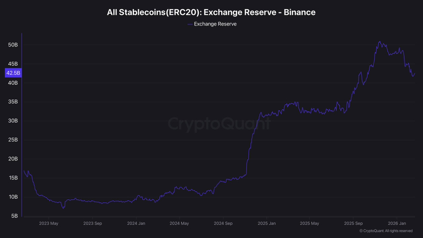 La sfârșitul anului 2025 și începutul anului 2026, piețele cripto au fost într-o fază de bear sau mixtă. Cu procesul de consolidare, marii jucători, cum ar fi Binance, vor câștiga lichiditate, iar jucătorii mai mici vor experimenta o ieșire de lichiditate sau stagnare. Statisticile indică faptul că piscina de stablecoins a Binance a fost pe o tendință ascendentă, în ciuda altora care se reduc ca dimensiune.