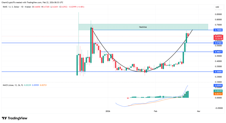 Pero ojo, que aquí es donde la cosa se pone técnica y emocionante. RAVE está dibujando en el gráfico lo que llamamos un "fondo redondeado". Básicamente, el precio hizo una U perfecta desde los $0.30, subió con calma, y ahora está golpeando la puerta de una resistencia crítica en los $0.70. Esta zona no es cualquier número; es el "escote" de la formación. Si logramos romper ese techo con un cierre diario firme, el camino está despejado para correr hacia los $0.75 o incluso los $0.78. 📈