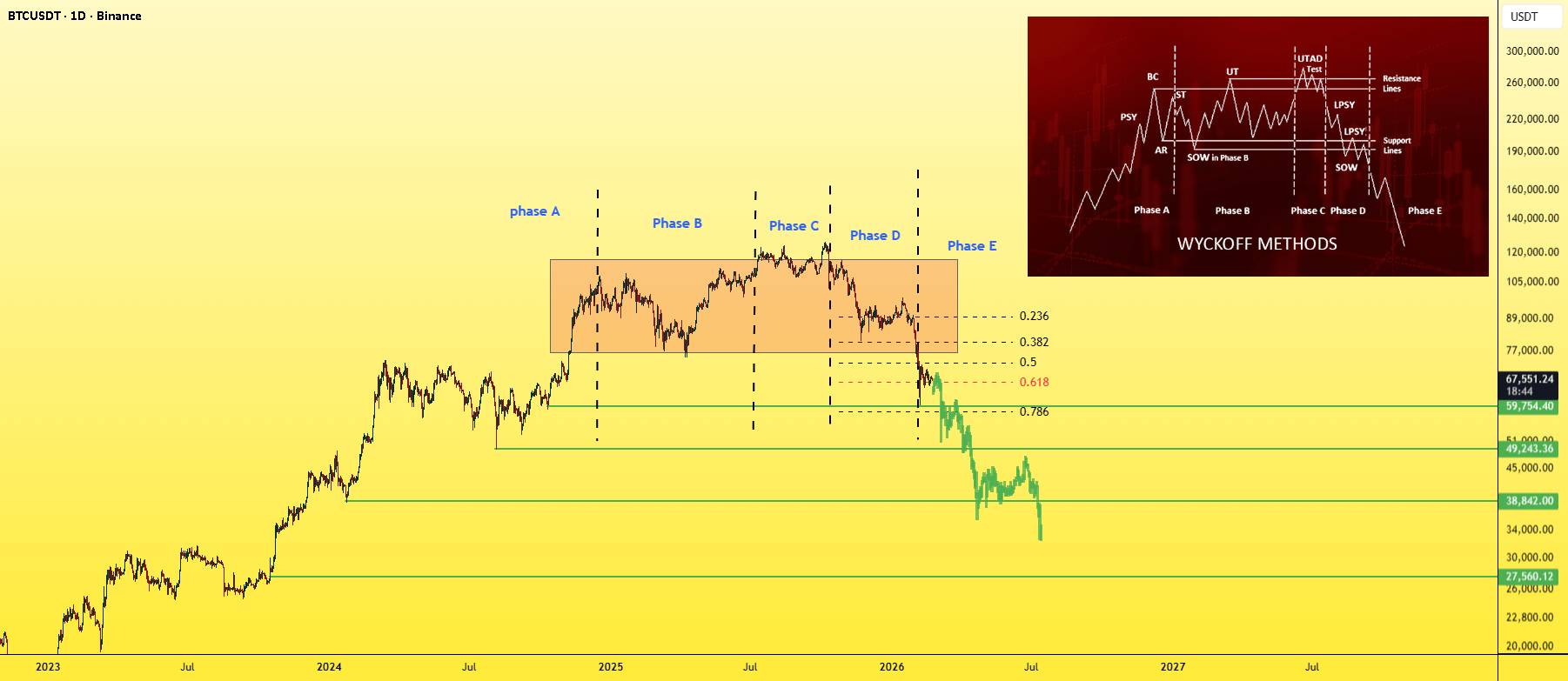 Bitcoin has been declining for a while now, and the bearish leg is still ongoing.