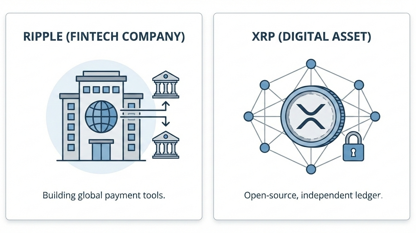 In simple words, Ripple is a company. XRP is a cryptocurrency. Ripple can use XRP, but it does not own the network. The XRP Ledger is open, independent, and supported by a worldwide community. Understanding this difference is not just technical knowledge it protects you from making emotional investment mistakes.