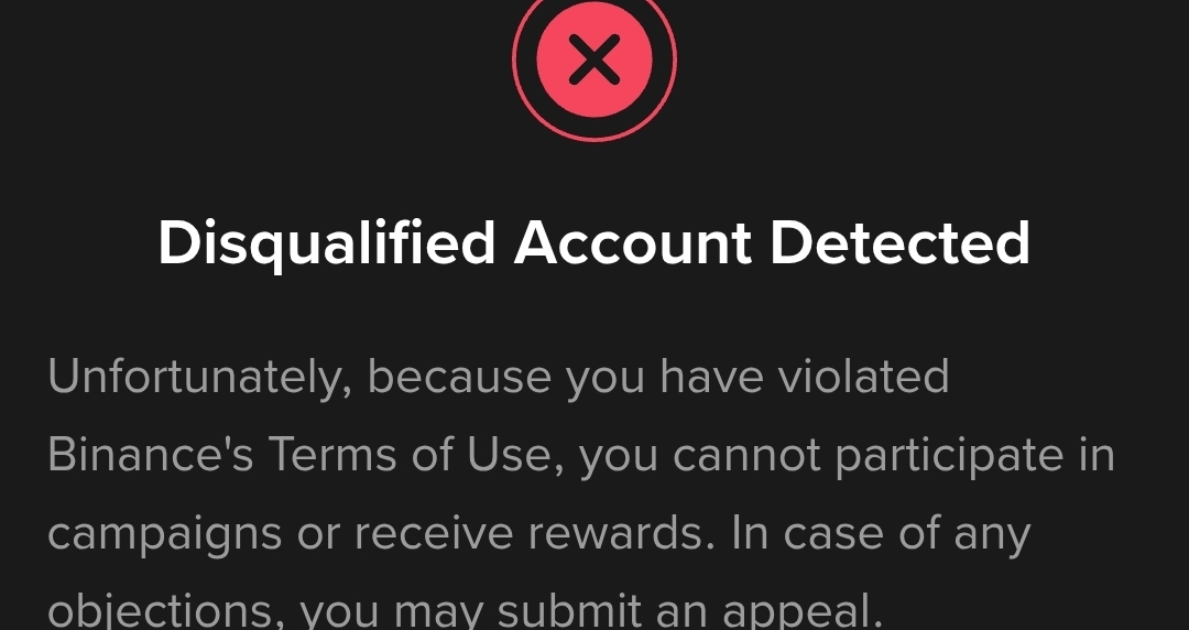 I think this is the reason for my account is disqualify I open one more account in my same device but I cannot any violation and miss behaviour and abnormal activities so anyone please help me to solve this please please I cannot receive or reward I recently join one campaign and win all week but Binance customer telling me I cannot receive a reward me brother and sister please help me to solve. I appeal to and three time but I fail.