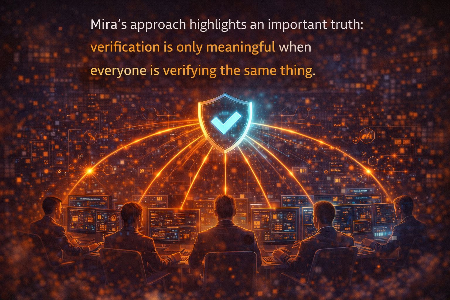 Mira’s approach highlights an important truth: verification is only meaningful when everyone is verifying the same thing.