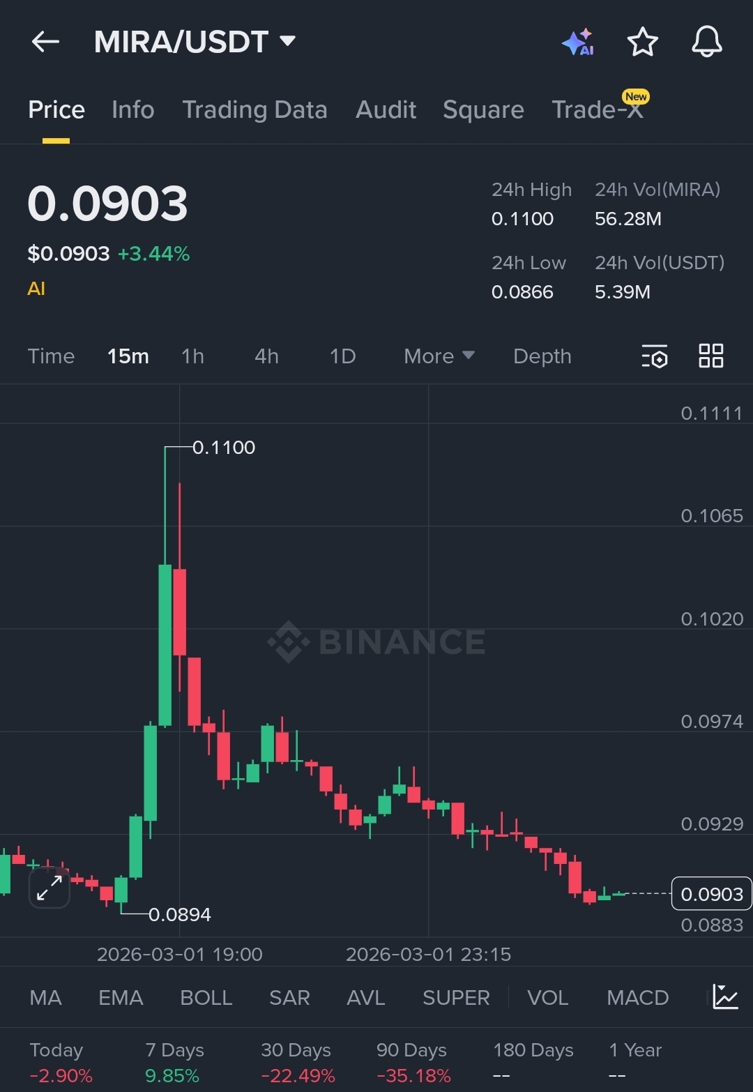 After reaching the recent high near $0.11, MIRA entered a corrective structure — not a collapse, but a market reset.