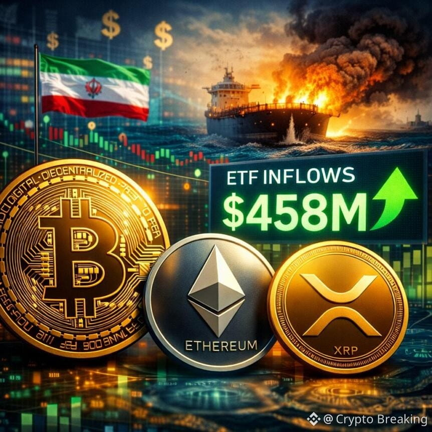 This article was originally published as Bitcoin, Ethereum, XRP Rally as ETF Inflows Hit $458M Amid Strait of Hormuz Crisis on Crypto Breaking News – your trusted source for crypto news, Bitcoin news, and blockchain updates.