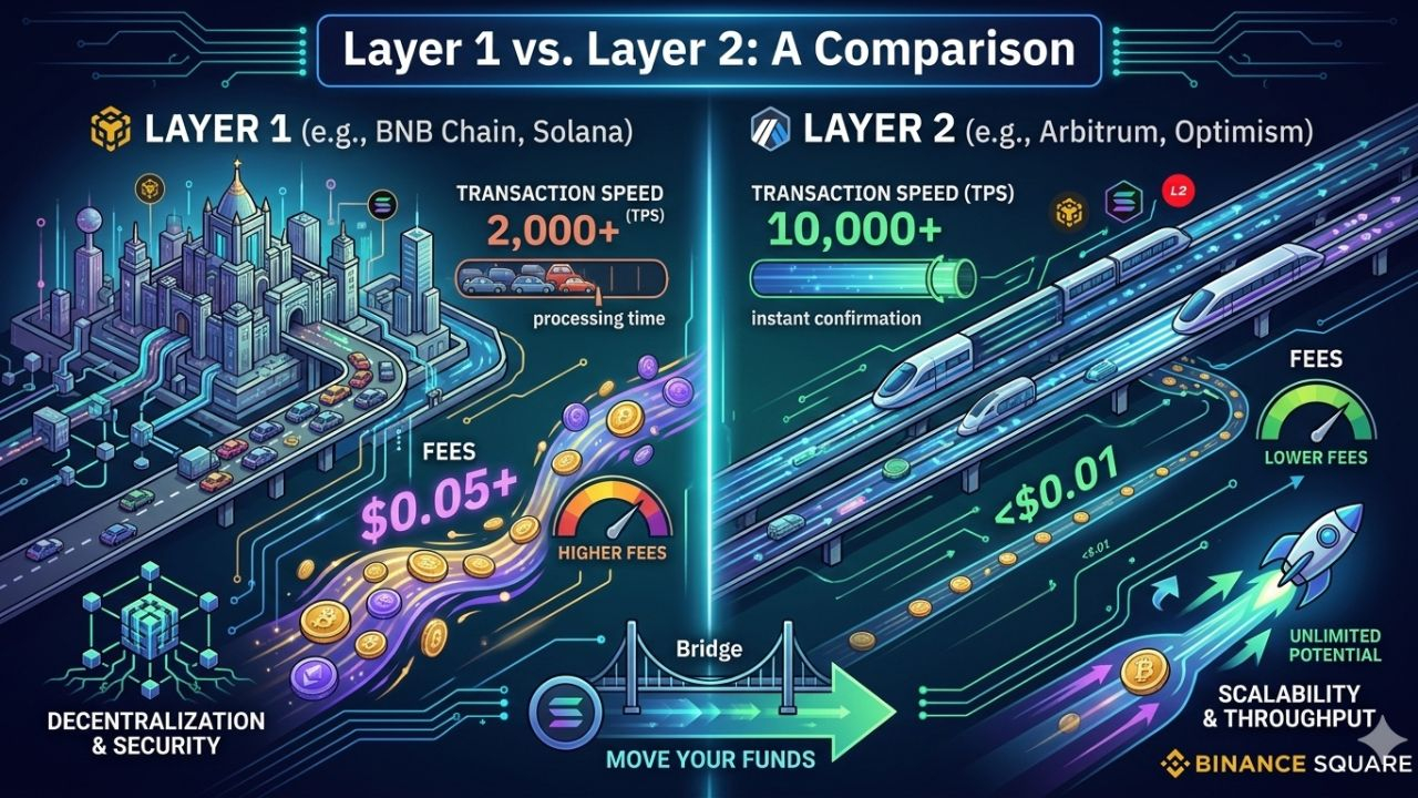 ETH L2s (Arbitrum, Optimism): Acestea moștenesc securitatea robustă a Ethereum în timp ce descarcă tranzacțiile. Oferă un impuls semnificativ în viteză și o reducere uriașă a costurilor de gaz comparativ cu mainnet $ETH.
