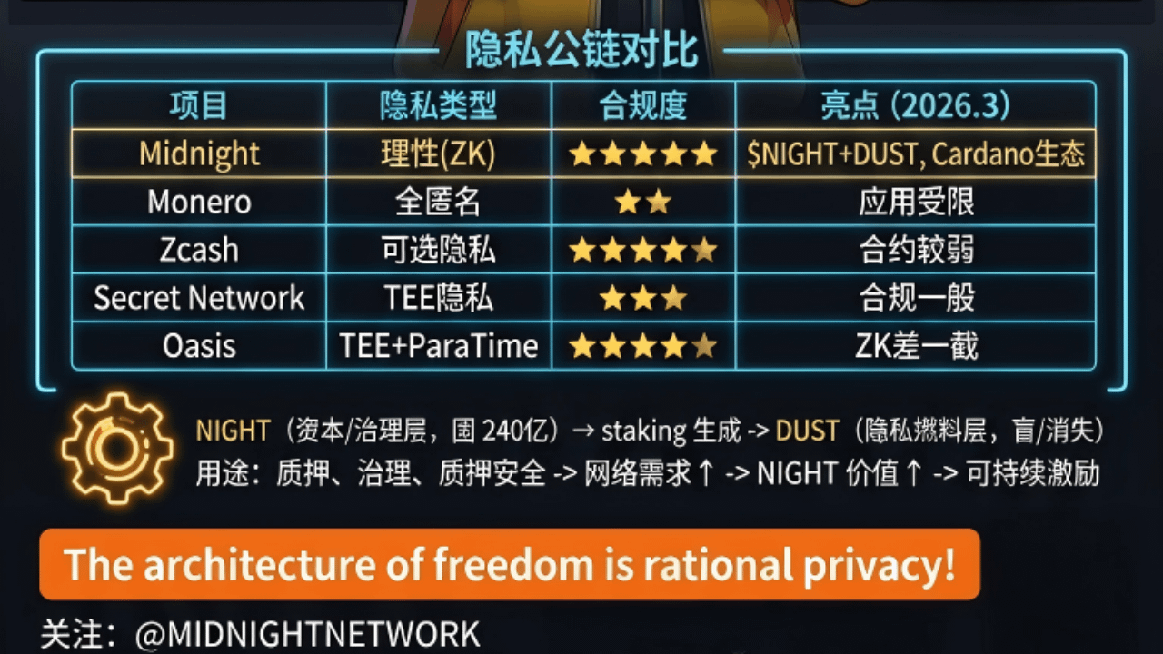 我们追crypto,不就是想“掌控自己的人生”吗?钱自由、数据自由、身份自由。Midnight给的不是极端藏匿,而是聪明地藏该藏的,露该露的。这才是成熟Web3该有的样子——不是反社会,而是负责任的自由。