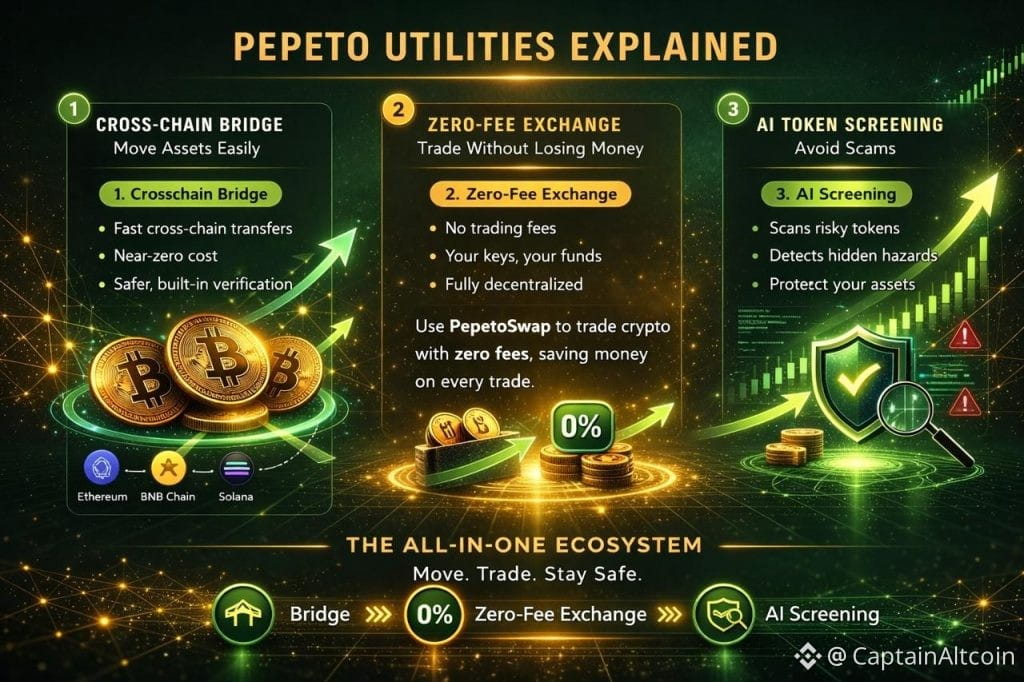 Tracking thousands of meme tokens and avoiding costly mistakes can overwhelm traders. Pepeto simplifies this with exchange tools that beat the manual approach every time. PepetoSwap removes trading fees so your capital stops bleeding. The risk scorer checks contracts before your money goes near them. The bridge sends tokens across chains at zero cost. These tools and protections are delivered through a clean exchange built on the Ethereum blockchain, so wallets inside can spot opportunities and avoid risks faster than anyone trading without them.