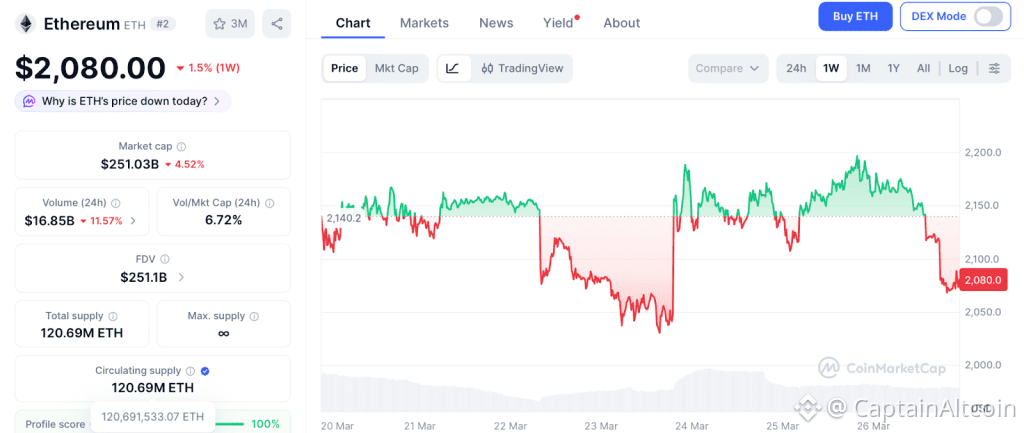 Ethereum trades at $2,080 after breaking below its short term trend line, according to CoinMarketCap. The 50 day EMA acts as resistance above $2,100. Bitmine buying 65,341 ETH last week adds demand, and the Glamsterdam upgrade targeting May 2026 brings a major protocol improvement.