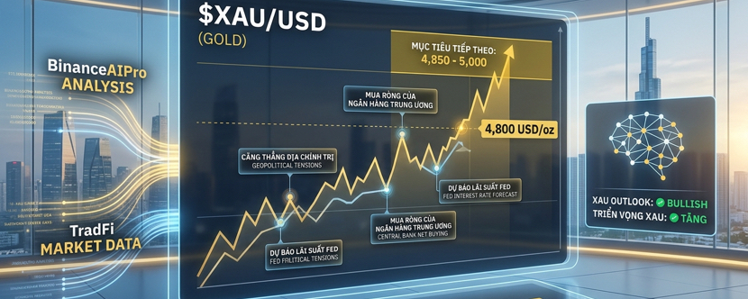 Hiện tại, ngưỡng cản 4.850 USD/ounce đang là mốc quyết định. Nếu phá vỡ vùng này, mục tiêu tiếp theo có thể hướng tới 5.000 USD/ounce vào cuối năm. Tuy nhiên, thị trường đang ở trạng thái biến động cao (volatility), nhà đầu tư nên tận dụng các công cụ AI trên @Binance Vietnam để theo dõi dòng tiền và quản trị rủi ro thay vì hưng phấn quá đà (FOMO).