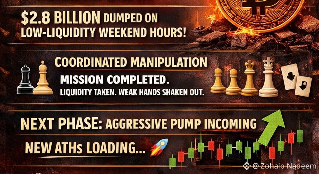 👉 Total: ~$2.8B în BTC vândut în timpul lichidității subțiri de weekend