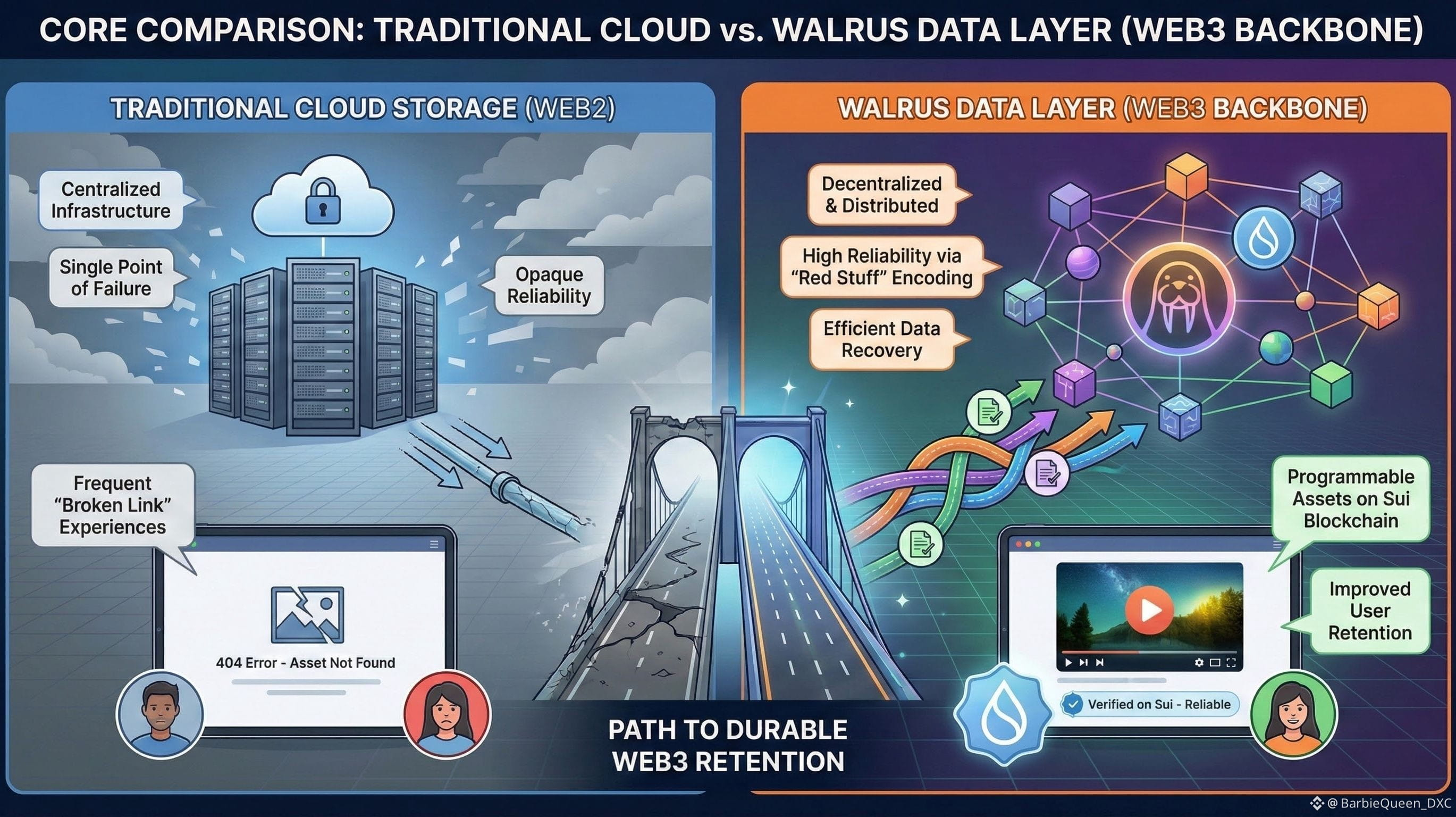 Prima dată când o aplicație Web3 își pierde un utilizator pentru totdeauna, rar se întâmplă din cauza taxelor de tranzacție prea mari sau a opririi blockchain-ului. De obicei, se întâmplă pentru că o imagine simplă nu s-a încărcat. Istoricul tranzacțiilor arată perfect, iar portofelul se conectează instantaneu, dar activul digital în sine apare ca un link rupt.