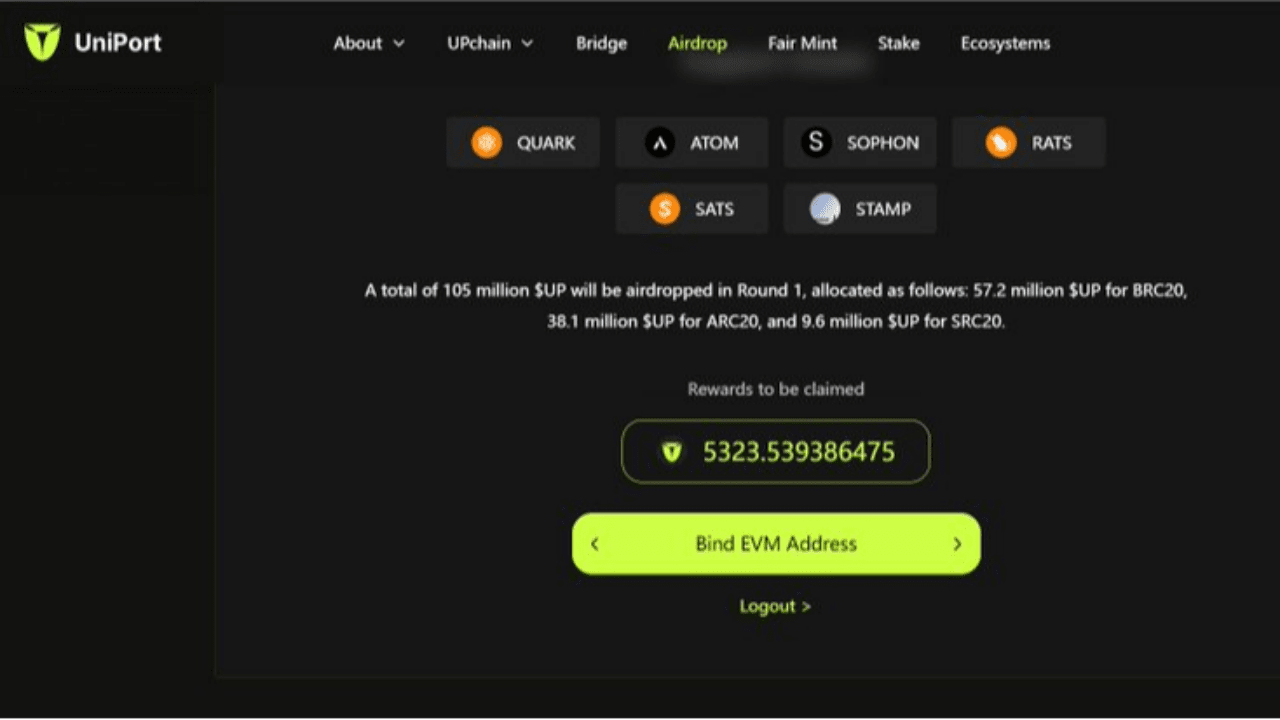 Obțineți adresa URL: https://airdrop.uniport.network După conectarea la portofel, completați adresa dvs. de evm. Ar trebui să fie trimisă direct în portofel.
