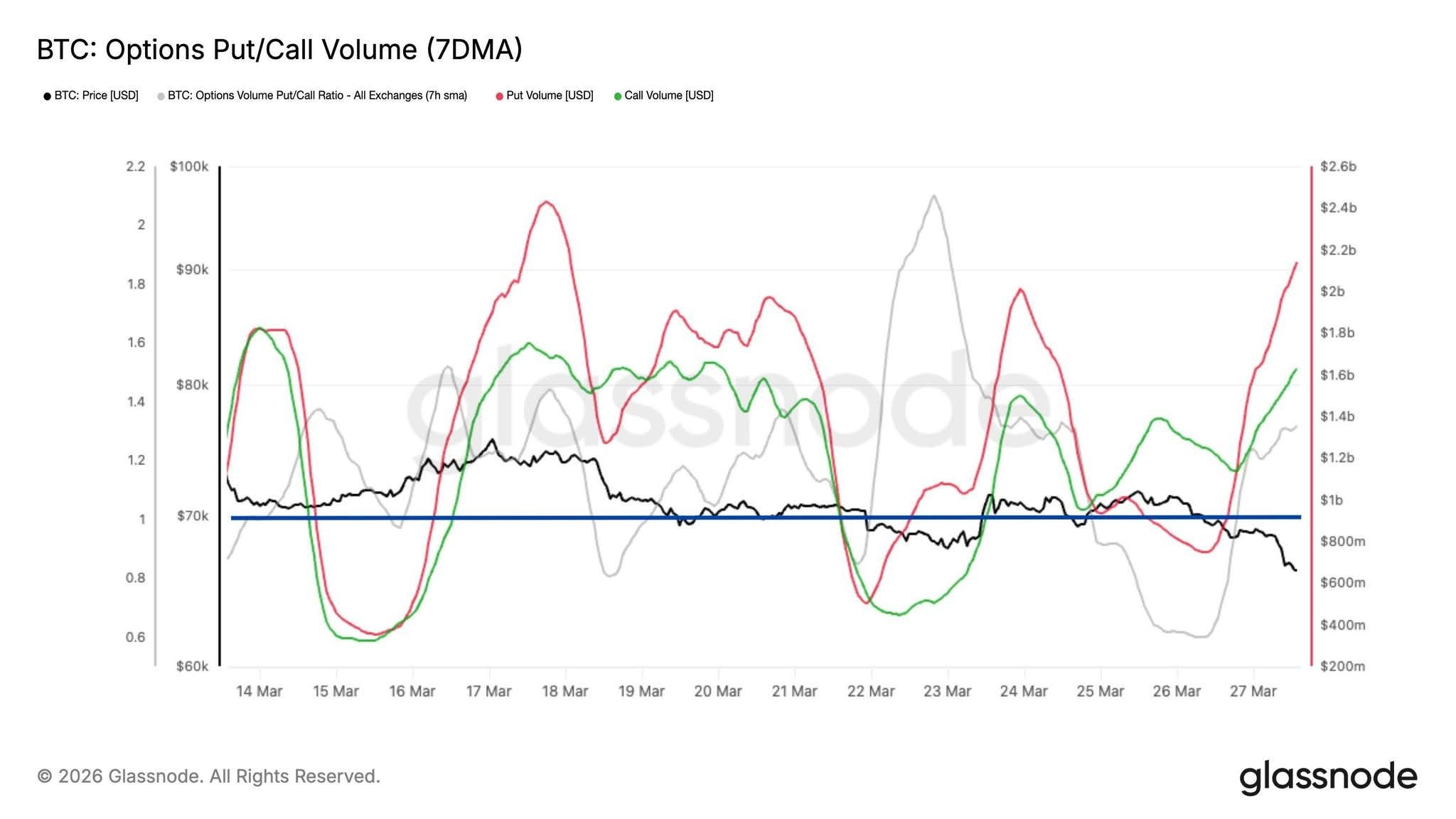 За последние две недели активность была сильно обусловлена потоками опционов пут, составляя 65,8% от активности.