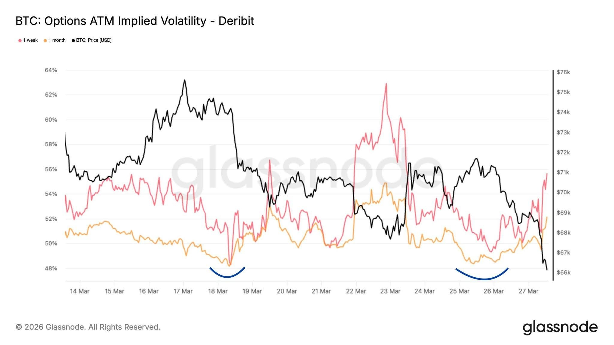 2️⃣ Имплицированная волатильность вернулась к более высоким уровням.