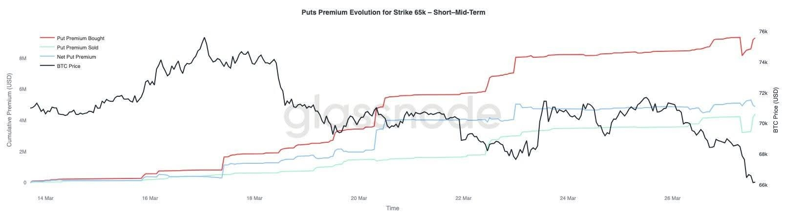 Опционы пут на уровне 65К увидели сильный спрос после того, как уровень 75К был отклонен.