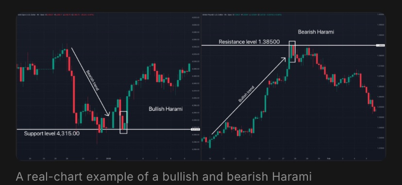 A bullish and bearish Harami pattern