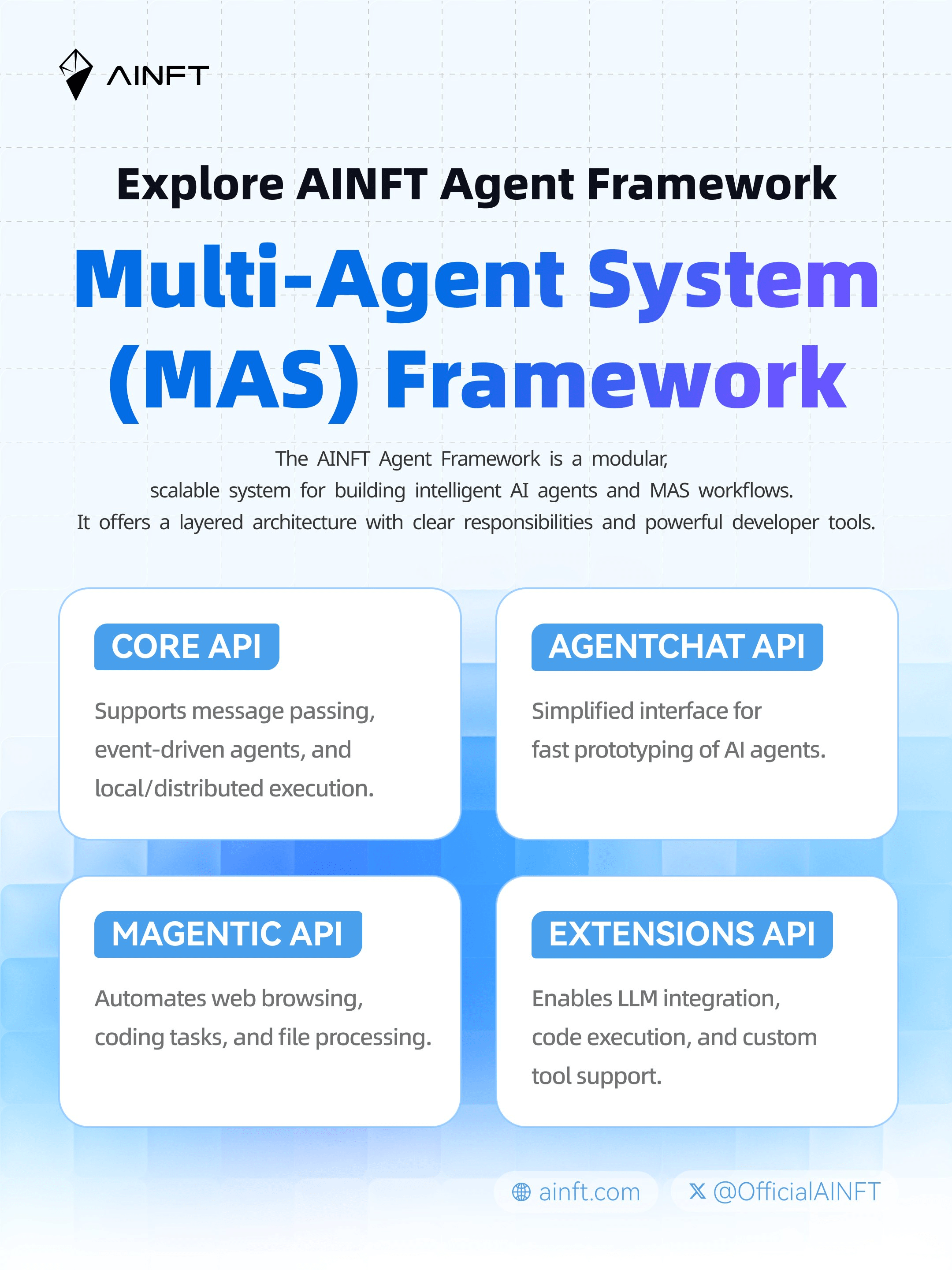 AINFT представляет собой революционный шаг вперед в слиянии ИИ и блокчейна с AINFT Agent Framework, полным основанием для создания интеллектуальных, модульных и децентрализованных ИИ-агентов.
