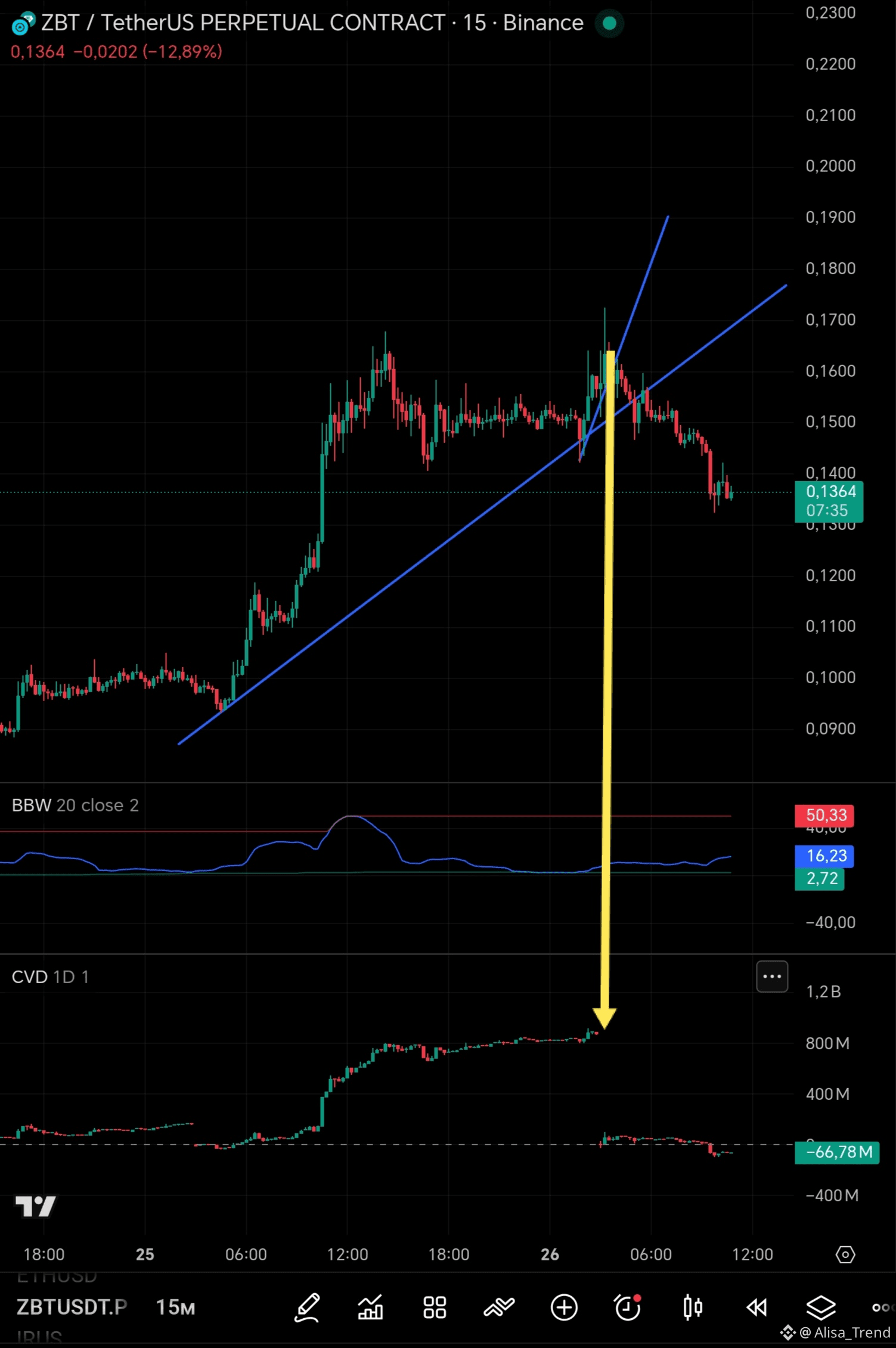Посмотрите на этот график $ZBT . Это идеальный пример того, как индикаторы объема подсвечивают то, что скрыто от наших глаз. Пока все смотрят только на свечи, нам нужно смотреть в самую суть рынка.