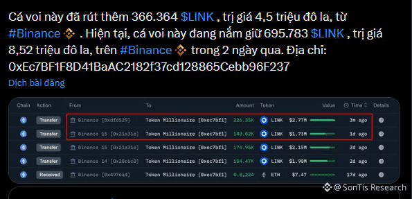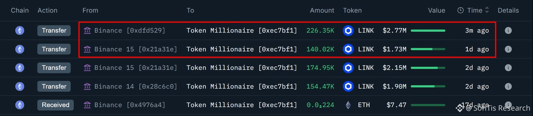 🔹Một con cá voi vừa âm thầm dọn kho Binance, gom sạch hơn 8,5 triệu đô $LINK về ví cá nhân trong 48h