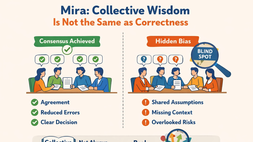 I like the direction because verification probably does matter more than another round of generation hype. But collective wisdom is not the same as correctness, and consensus is not the same as truth. Mira may reduce random hallucinations. I think that part is plausible. The harder question is whether it can resist coordinated blind spots when the models appear diverse but think in roughly the same lane.