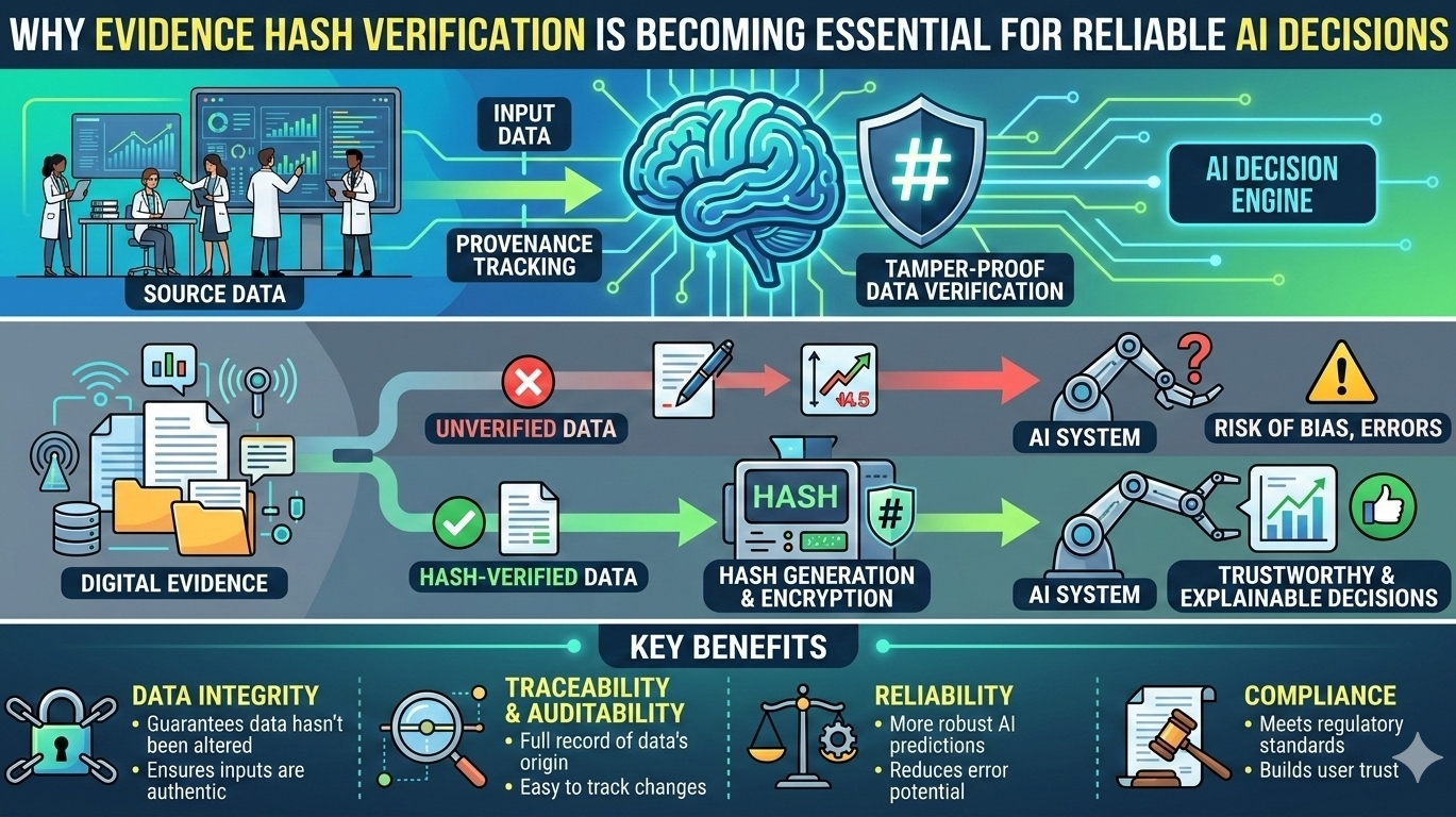 At the center of this system is something called an evidence hash which acts as a digital receipt showing that a machine generated decision has passed through an independent verification process.