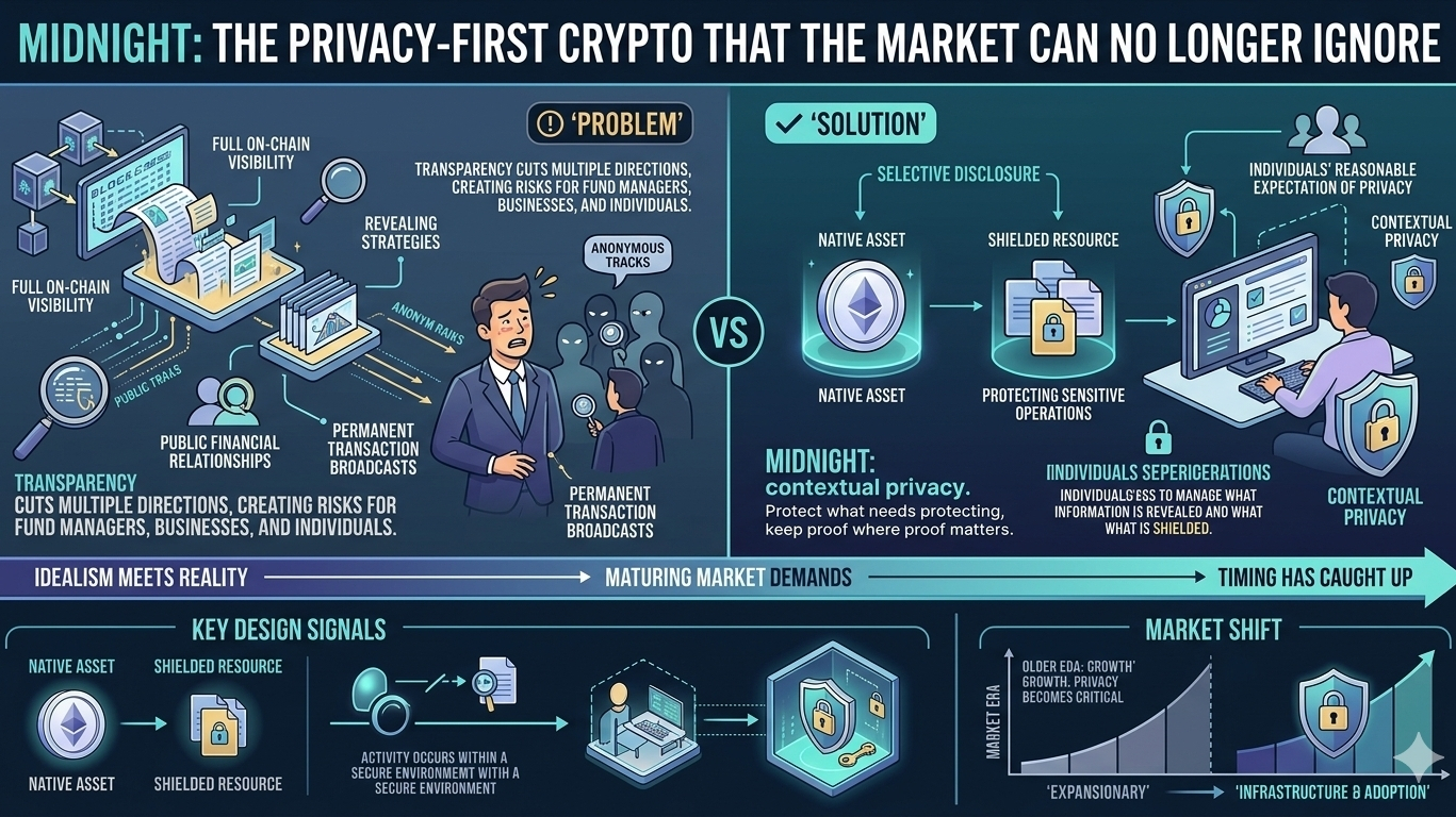 The problem that Midnight was built to solve has become harder to ignore. The market has matured into it, rather than past it.