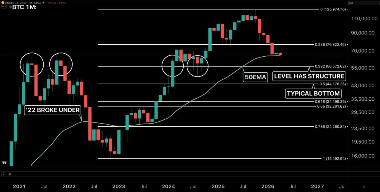 If Bitcoin loses the 50EMA: The next logical move is a test of $56.5K (the .382 level). Level to level.
