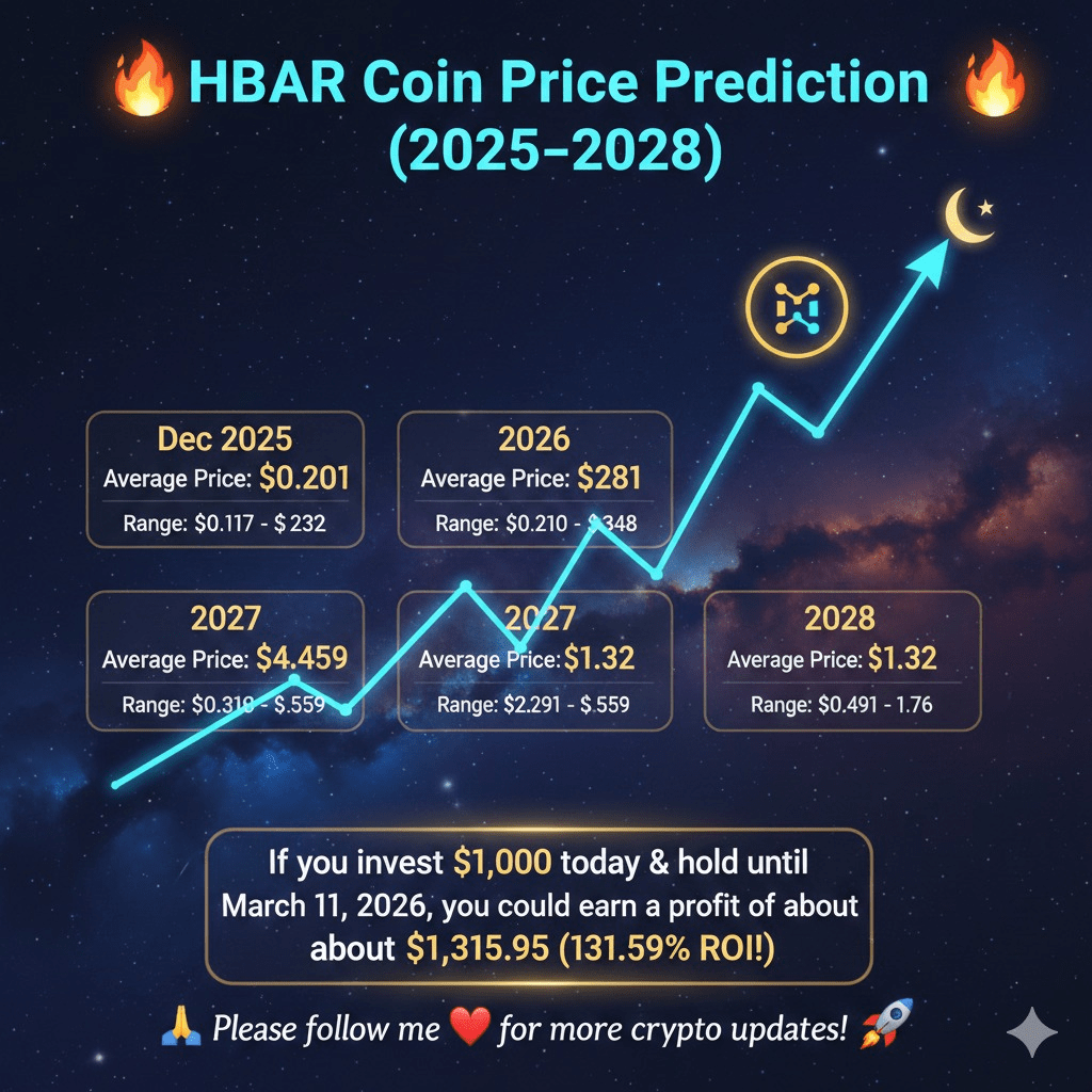 🔥🔥🚀 Dự đoán giá HBAR Coin (2025–2028) ⚡🌙