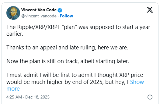 $XRP Khi năm kết thúc với một ghi chú giảm giá rộng rãi, các nhà phân tích đang điều chỉnh kỳ vọng cho XRP sau khi đồng tiền này trải qua sự sụt giảm đáng kể trong sáu tháng qua. Từ đỉnh điểm tháng 7 ở mức $3.66,