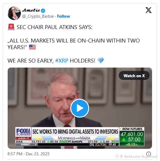 That question took on new urgency following an X post by Amelie, who highlighted a Fox Business interview featuring U.S. Securities and Exchange Commission Chair Paul Atkins. While the post energized XRP holders, its broader significance lies in what it reveals about the future direction of U.S. capital markets.