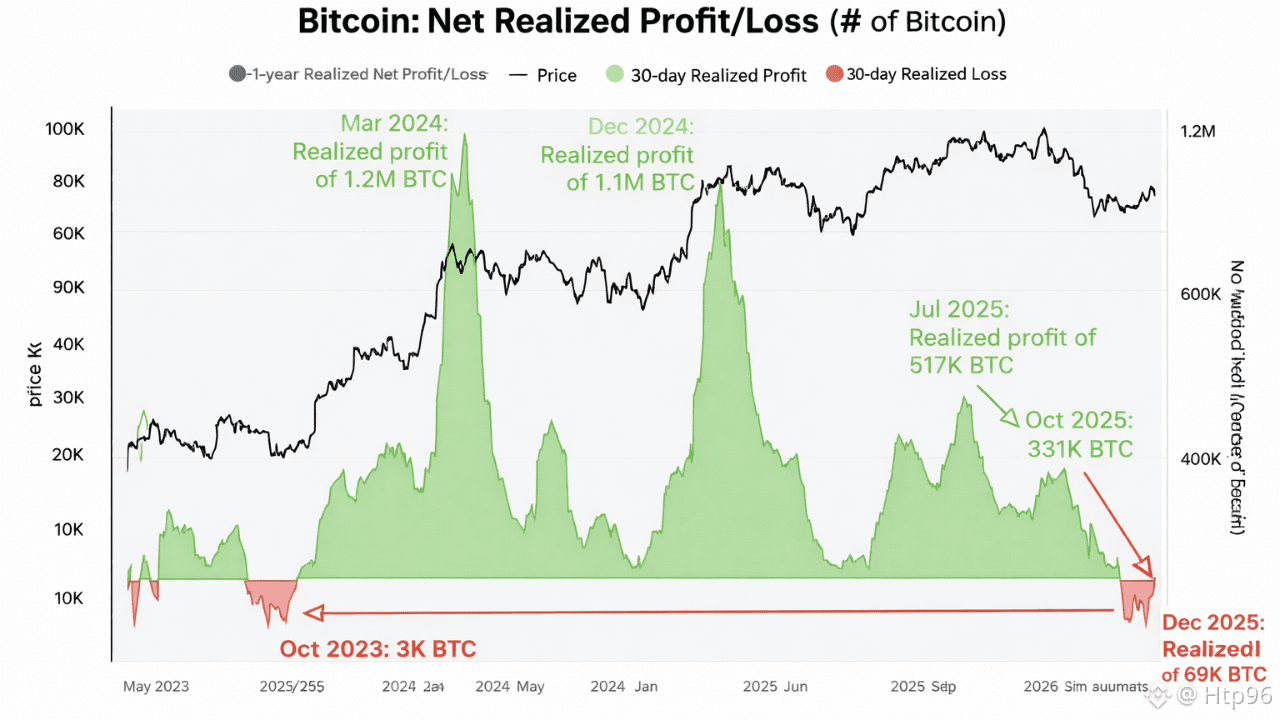 Về dài hạn, $BTC thường chỉ tạo đáy khi mức thua lỗ đạt đến cực điểm trong khi cấu trúc xu hướng lớn vẫn được giữ vững.